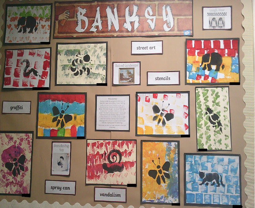 Year 1 have been diving into the mysterious world of Banksy — the anonymous street artist known for his bold, thought-provoking artwork. The children learned about who Banksy is, the messages behind his art, and how he uses stencils to create powerful images. Inspired by his style, they designed and created their own pieces of artwork, expressing their ideas through colour, shape, and symbolism. The results were imaginative, expressive, and full of personality — just like Banksy himself!