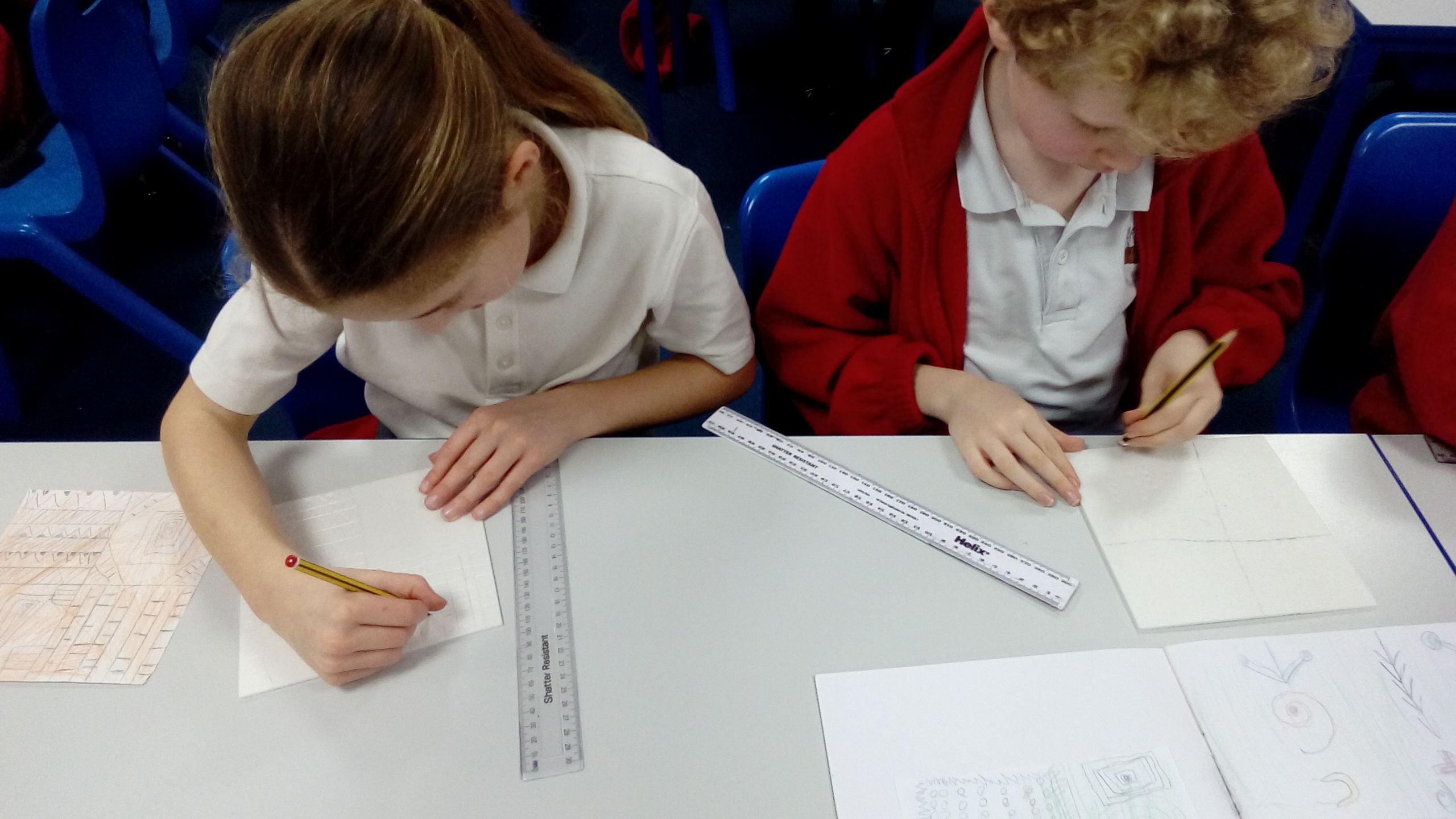 The children have started to investigate textiles and patterns from Africa. As part of their Engage activity, they looked at how Batik is used to create patterns on materials. They investigated repeating patterns, they designed their own patterns and then used wax candles to create their pattern on paper, before painting over it.