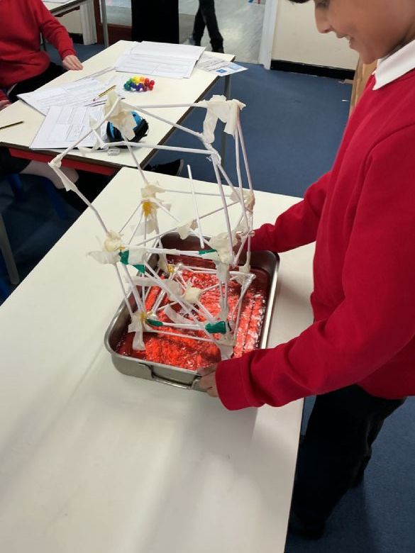 To build on our learning all about earthquakes and their impacts, we have designed buildings to try and withstand the force of an earthquake! We explored different techniques, such as cross bracing, wide structural bases and even spacing of supports. Working in groups, children designed their own earthquake-proof towers, and used a range of tools and techniques such as using glue guns, tape or folding and sealing straws together. Take a look at our fantastic structures below!