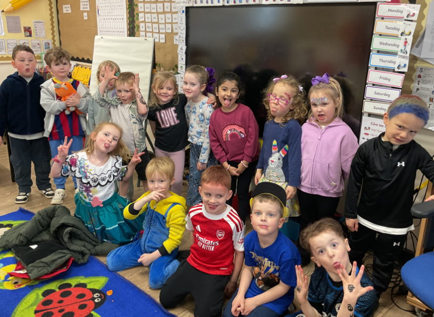 We had a great time wearing our own clothes, wearing or doing something funny for money to raise money for Comic Relief.